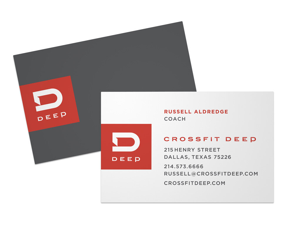 CrossFit Deep is a gym that uses varied functional exercise to help people reach their fitness goals. The project included a logo re-design as a bold graphic that reinforces the word deep. In addition, T-shirts, business cards, and signage were designed as supporting graphics. The project was an exercise in raising the bar for design in the physical fitness industry